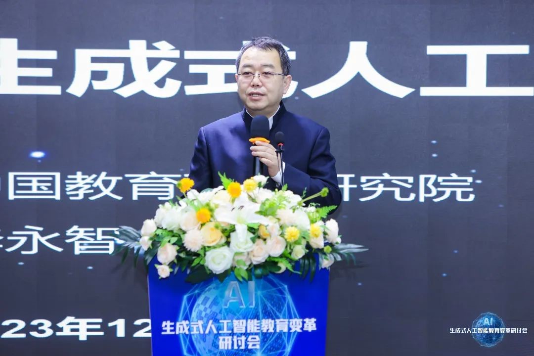 近日,由中國教育科學研究院數(shù)字教育研究所主辦的生成式人工智能教育變革研討會在北京成功舉辦。研討會圍繞 生成式人工智能教育變革的機遇挑戰(zhàn)、應用場景、實踐創(chuàng)新等主題,邀請教育和人工智能領域的知名專家、青年學者及地方教育部門負責同志作了十余場主旨報告和專題分享,介紹了生成式人工智能技術發(fā)展前沿,分享了教育改革創(chuàng)新思路和區(qū)域實踐案例,提出了政策建議,為促進教育數(shù)字化轉型、智能化升級提供了智力支撐。中國教育科學研究院黨委書記、院長李永智出席會議并作主旨報告。