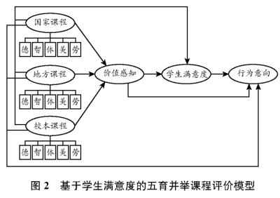 最后,深化細(xì)化德智體美勞 “ 五育” 并舉學(xué)校課程建設(shè)流程和實(shí)效。重點(diǎn)扎實(shí)系統(tǒng)穩(wěn)步地推進(jìn)如下五個序列性工作 :一是開展學(xué)生需求評估。通過測評學(xué)生在 “德智體美勞” 各方面的因果關(guān)系及其權(quán)重 ,研判學(xué)生 “德智體美勞” 各方面以及整體發(fā)展現(xiàn)狀、特點(diǎn) 、規(guī)律和需要 , 進(jìn)而為確定各學(xué)段各年級學(xué)生 “ 五育” 目 標(biāo)和課程分配比例以及先后順序提供科學(xué)依據(jù)。二是確定學(xué)生 “ 五育” 并舉目標(biāo)。 在需求評估的基礎(chǔ)上 , 通過課程審議小組的審議 , 確定 “ ‘ 五育 ’ 并舉課程建設(shè) ”的總體目標(biāo)、 大致結(jié)構(gòu)和資 源分配比例等 。 三是組織實(shí)施課程開發(fā)和審定。 根據(jù)總體目標(biāo)制定學(xué)??v橫向 “‘ 五育 ’并舉課程開發(fā)與實(shí)施指南” 和 “ ‘ 五育 ’ 并舉校本課程開發(fā)方案” ,通過課程審議小組審定后 ,對教師進(jìn)行培訓(xùn) , 通過縱橫向兩個項(xiàng)目組的分工合作 ,開發(fā)德智體美勞 “ 五育” 并舉學(xué)校課程體系 。四是指導(dǎo)開展課程設(shè)計(jì)和教育教學(xué)活動。在教師主導(dǎo)下,充分發(fā)揮學(xué)生的主體性 , 突出 “學(xué)習(xí)者中心 ” “ 知識中心”“評價中心 ”“共同體中心 ”?!皩W(xué)習(xí)者中心 ” 要求充分考慮學(xué)習(xí)者德智體美勞 各方面 的原有知識 、經(jīng)驗(yàn)基礎(chǔ)和個性特點(diǎn) ,進(jìn)而確定 “ 五育” 的最近發(fā)展 區(qū)。“ 知識中心 ” 要 求使德智體美勞各方面的新知識與學(xué)習(xí)者的原有知識有機(jī)結(jié)合 , 并使知識與其應(yīng)用的情境條件有機(jī)結(jié)合起來 , 具體可以從學(xué)習(xí)者的經(jīng)驗(yàn)出發(fā)設(shè)計(jì)情境 , 設(shè)置認(rèn)知沖突 ,引起學(xué)習(xí)者反思 ,促使其運(yùn)用證據(jù)證明自己的觀點(diǎn) 。“評價中心 ” 要求持續(xù) 、 即時地提供反饋 , 以反饋促進(jìn)學(xué)習(xí)者對 “ 五育”的反思 , 具體可以采用教師的即時反饋 、 計(jì)算機(jī)的客觀評價 、學(xué)習(xí)者自評 、 學(xué)習(xí)者之間的互評 ?!肮餐w中心 ” 要求為交互創(chuàng)造條件 ,幫助學(xué)習(xí)者之 間形成一致的見解 。具體可以設(shè)計(jì)支持交互的通信工具 、 交流平臺 ,組織活動讓學(xué)習(xí)者進(jìn)行討論。五是進(jìn)行課程綜合評價 。綜合評價重在檢驗(yàn) “ 五育” 并舉課程實(shí)施效果 , 對這一效果 的評價不僅要建立在德智體美勞 “ 五 育” 之間的內(nèi)在互動機(jī)制 和規(guī)律基礎(chǔ)之上 , 而且要體現(xiàn)和激發(fā)學(xué)生在接受 “ 五育” 并舉課程教育過程中的主體性和主動性 。為此 , 我們借鑒顧客滿意度指數(shù)模型 , 構(gòu)建了基于學(xué)生滿意度的 “ 五育”并舉課程評價模型 。該評價模型主要由國家、地方、校本德智體美勞 “ 五育” 并舉三級課程以及價值感知 、學(xué)生滿意、行為意向幾個因子構(gòu)成。每個因子設(shè)計(jì)若干測量題項(xiàng), 通過調(diào)查收集數(shù)據(jù) ,統(tǒng)計(jì)分析出諸因子之間的關(guān)系和路徑系數(shù) , 揭示諸因子之間的相互作用和內(nèi)在機(jī)制 ,最終形成基于學(xué)生滿意度的“ 五育” 并舉課程綜合評價結(jié)果。