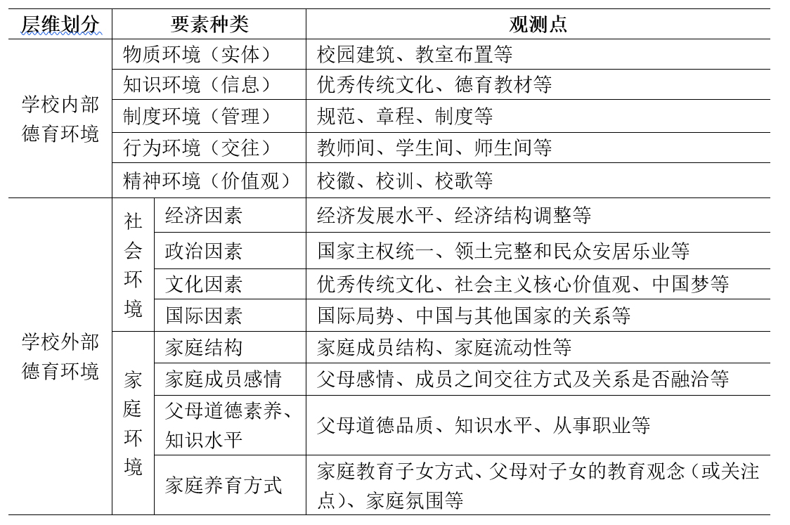 職業(yè)教育是國民教育體系和人才資源開發(fā)的重要組成部分,不僅關(guān)乎人民群眾通過高質(zhì)量就業(yè)滿足對(duì)美好生活的需要,而且還是推進(jìn)教育現(xiàn)代化、建設(shè)教育強(qiáng)國和辦好人民滿意的教育的重要抓手。中等職業(yè)教育作為一種教育類型和教育形式,在培養(yǎng)勞技人才、傳承技術(shù)技能、促進(jìn)就業(yè)創(chuàng)業(yè)、支持經(jīng)濟(jì)社會(huì)發(fā)展等方面發(fā)揮著重要作用,是廣大青年走向成功成才、實(shí)現(xiàn)人生出彩的重要途徑。中職學(xué)生是專業(yè)勞技人才的主要來源和高素質(zhì)勞動(dòng)者的重要后備力量,肩負(fù)著促進(jìn)我國產(chǎn)業(yè)轉(zhuǎn)型升級(jí)和經(jīng)濟(jì)高質(zhì)量發(fā)展的重任。在中職學(xué)生成長成才和自主發(fā)展中學(xué)校道德教育至關(guān)重要。朱小蔓老師曾明確指出:“道德教育是學(xué)校教育的靈魂”[ ]。隨著經(jīng)濟(jì)發(fā)展不斷加快、科技進(jìn)步持續(xù)提速、社會(huì)轉(zhuǎn)型漸趨深入和價(jià)值觀念日益多元,中職學(xué)校德育不斷遭遇新問題和面臨新挑戰(zhàn),如:德育實(shí)效性還不夠高、德育環(huán)境還不夠適切、德育方法還不夠多元、德育資源發(fā)掘還不夠深入等。因此,系統(tǒng)建構(gòu)與學(xué)生自主成長、全面發(fā)展、終身發(fā)展訴求相適切的學(xué)校德育環(huán)境既是中職教育的核心議題,也是促進(jìn)中職教育高質(zhì)量發(fā)展的方向和目標(biāo),重要而迫切。