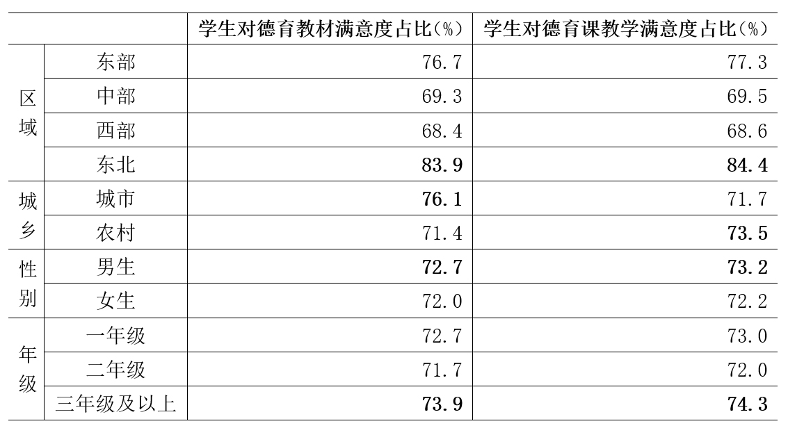 表3 中職學(xué)生對(duì)學(xué)校德育教材和德育課教學(xué)滿意度占比情況